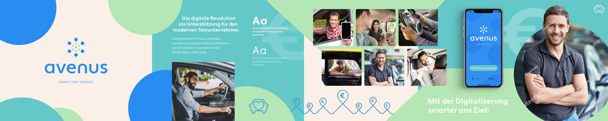 Helles, farbenfrohes Beispiel einer Markenidentität für Avenus.
